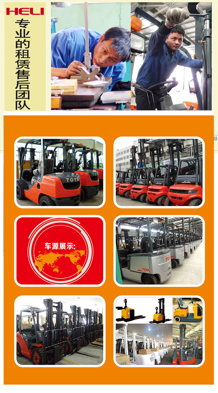 合力叉車作為國內(nèi)最大的叉車銷售及服務(wù)提供商,我們的服務(wù)項目:從整機(jī)租賃到備用車更換,售后服務(wù),叉車司機(jī)培訓(xùn),以及維護(hù)保養(yǎng),車輛年審一應(yīng)俱全。